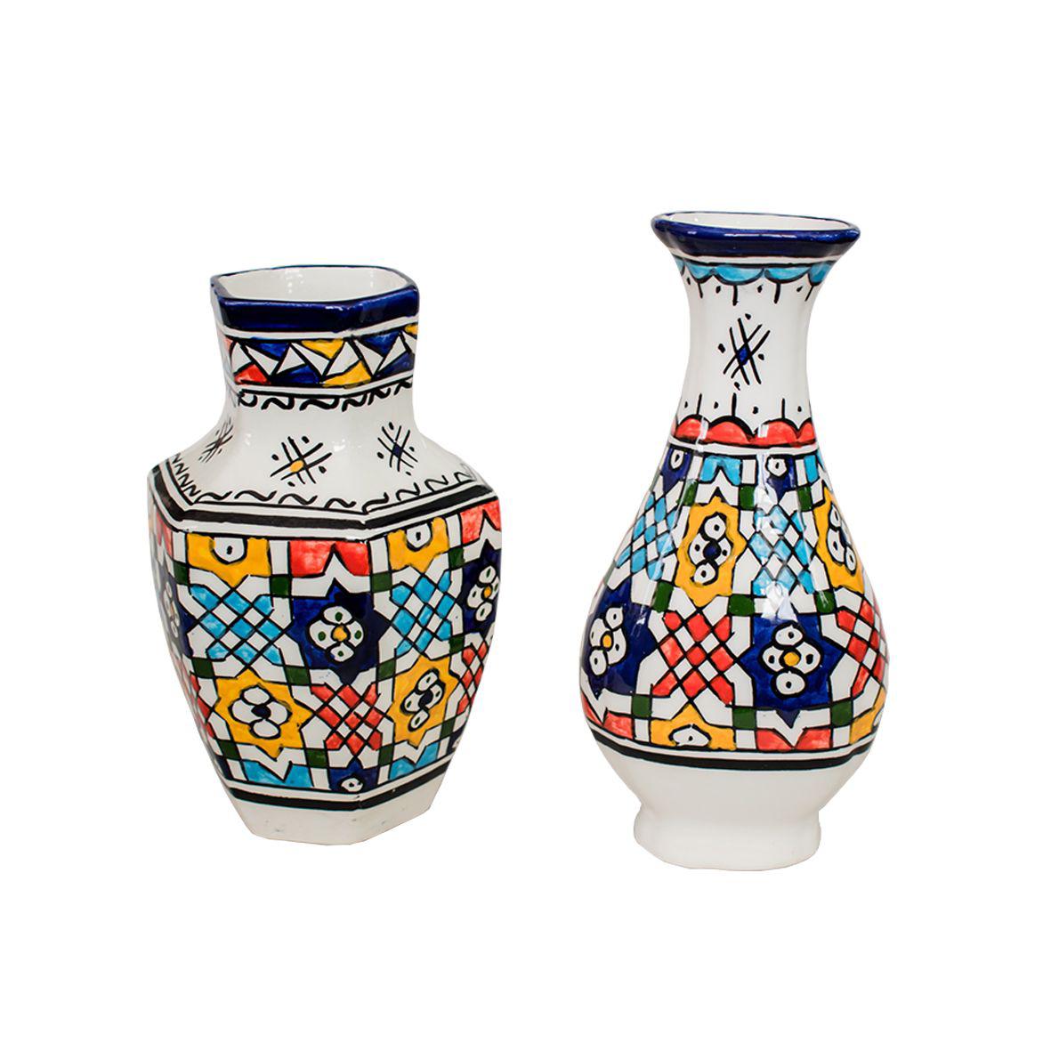 Ce magnifique duo de vases "Zellige Coloré" apporte une touche de fraîcheur et de dynamisme à votre décoration intérieure. Fabriqués à la main par des artisans marocains, chaque vase est orné de motifs colorés inspirés du style Zellige traditionnel, mettant en valeur l'authenticité et la richesse de l'artisanat marocain.